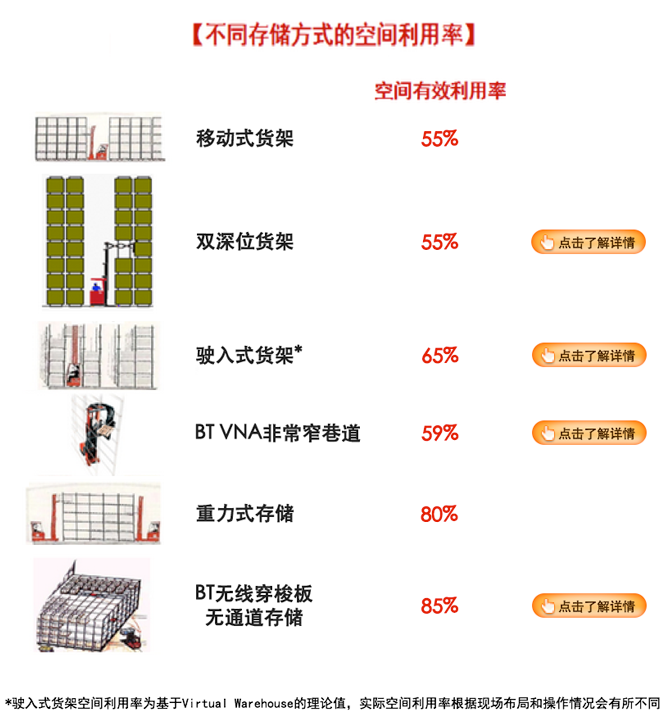 實現(xiàn)更高空間利用率的全新鉸接式轉(zhuǎn)向裝置鉸接式設計,車輛在換巷時所需空間更小,較傳統(tǒng)VNA叉車 ■每個通道、每層可以多出4個托盤位(換巷道兩側(cè)各2個) ■按8層貨架計算,每個通道可以多出32個托盤位