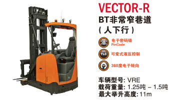 ■BT Vector R系列是專為導軌或電線配套設計,從而實現(xiàn)窄巷道里的快速安全作業(yè)。